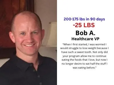 Gaining weight as you get older can actually lead to more danger. You’re not only at risk for long-term health issues like heart problems, but in the short term you might notice your performance at work go down, the energy you’re able to give your loved ones go down, and eventually many men are left not being able to be present for their kids and even grand kids. But if you take action today, in 90 days you will notice your confidence and energy go up while your weight and fat percentage go down, all without dieting or cardio.
